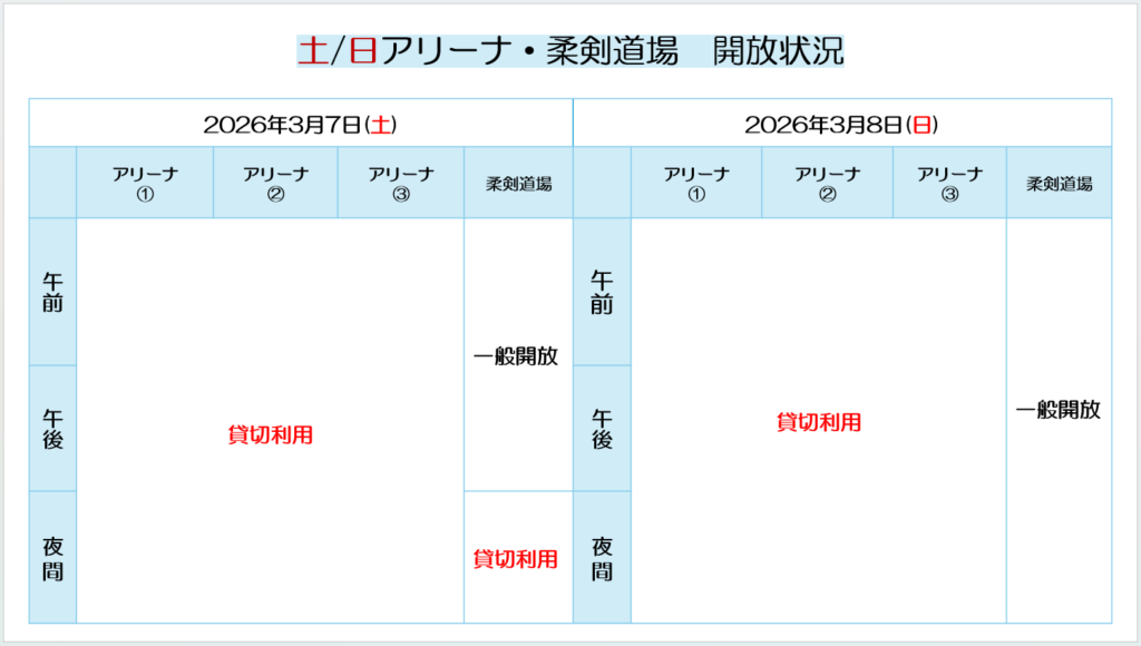 アリーナ・柔剣道場の利用状況は以下の通りとなります。