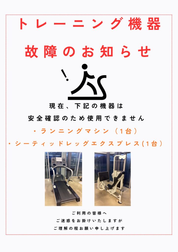 下記のトレーニング機器につきまして、当分の間ご利用いただけません。