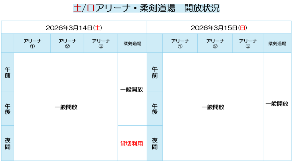 アリーナ・柔剣道場の利用状況は以下の通りとなります。