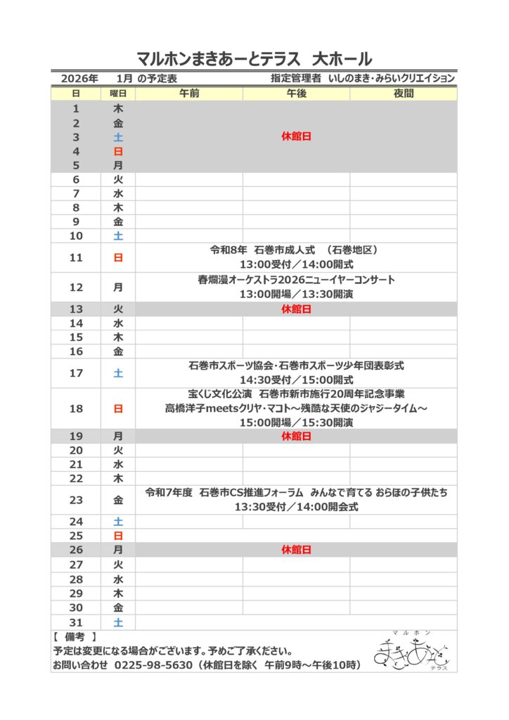 いつもマルホンまきあーとテラスをご利用いただき、ありがとうございます。