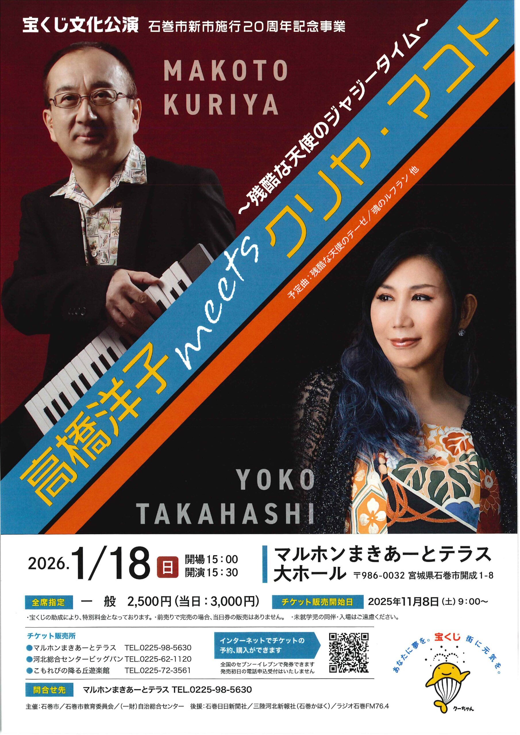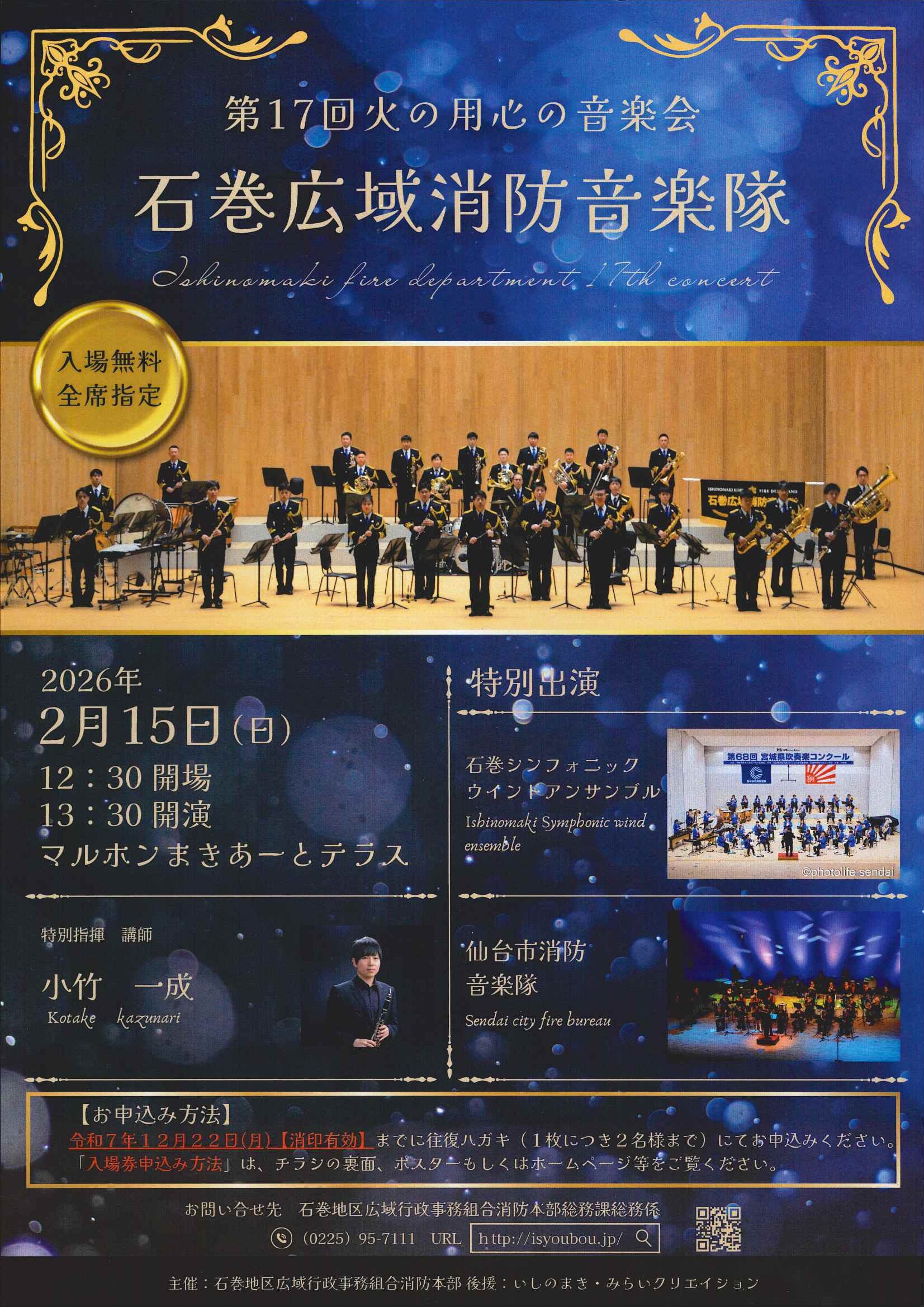 イベント マルホンまきあーとテラスのイベント 2026.02.15(日) マルホンまきあーとテラス 第17回 火の用心音楽会 石巻広域消防音楽隊 2026.01.18(日) マルホンまきあーとテラス ~残酷な天使のジャジータイム~ 高橋洋子meetsクリヤ・マコト 2025.12.12(金) マルホンまきあーとテラス 石巻シルバー人材センター 健康感謝のつどい 2025.12.07(日) マルホンまきあーとテラス 石巻弦楽アンサンブル第11回定期演奏会 2025.12.06(土) マルホンまきあーとテラス スピリチュアルイベント LOVE LOVE LOVE 2025.11.30(日) マルホンまきあーとテラス 【第三回】進化の石巻第九 1 2 3