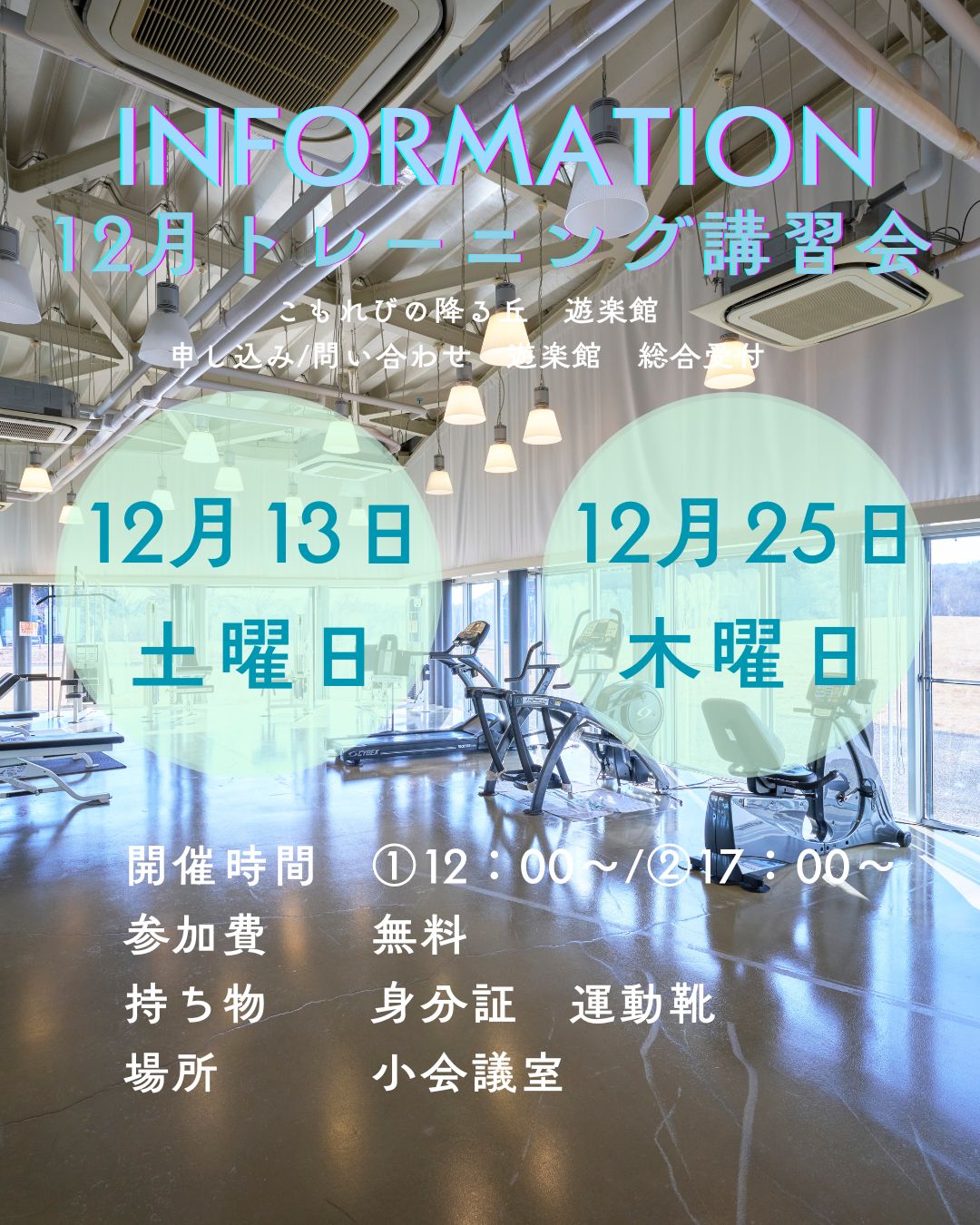 イベント こもれびの降る丘遊楽館のイベント 2026.01.18(日) こもれびの降る丘遊楽館 音楽の花束 Vol.2 2025.11.24(月) こもれびの降る丘遊楽館 丘の市 2025.11.24(月) こもれびの降る丘遊楽館 わくわく砂絵体験~砂で描く私のアート~in丘の市 2025.11.22(土) こもれびの降る丘遊楽館 陸上自衛隊第6音楽隊コンサート~青少年健全育成・音楽と共に未来へ~ 2025.11.09(日) こもれびの降る丘遊楽館 お茶会&お点前体験会“和” 2025.12.13(土) こもれびの降る丘遊楽館 遊楽館 12月トレーニング講習会 実施 1 2